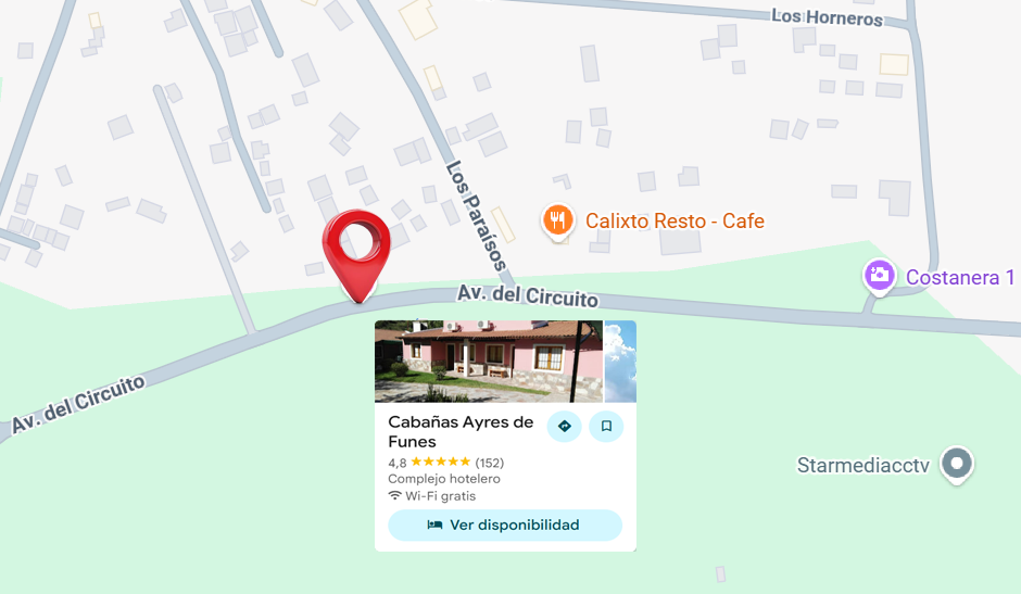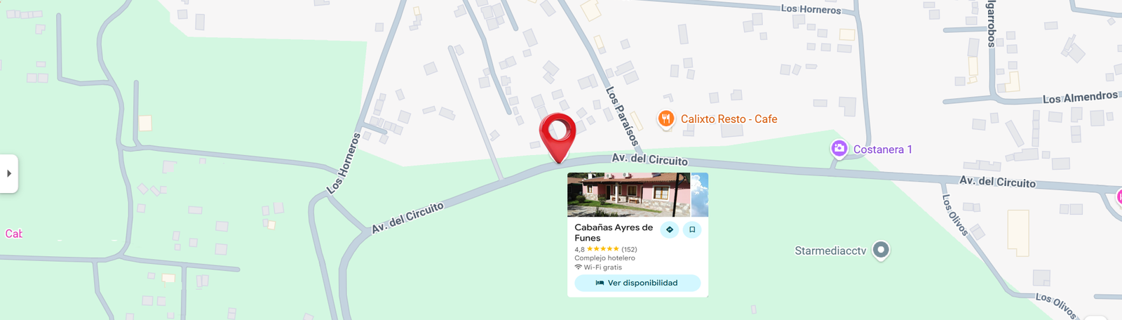 Está sobre la ruta del circuito, lo que permite estar cerca de comercios, pero es tranquilo el lugar igualmente. Cuenta con parrilla y pileta, ideal para compartir y disfrutar en familia o con amigos.